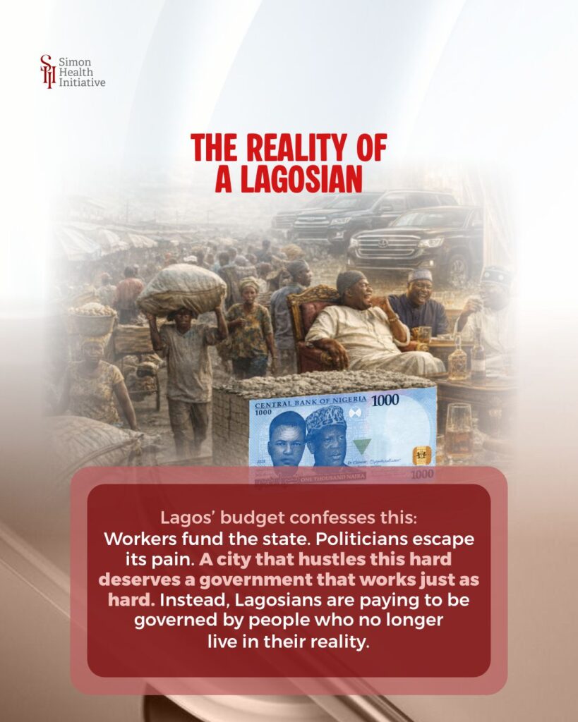 This infographic brings to light the stark contrast between the lives of Lagosians and the politicians who govern them. It highlights that while workers fund the state with their taxes, politicians live a life of comfort far removed from the struggles of the common people. Lagos, a city known for its hard work and hustle, deserves a government that reflects its people’s resilience. Instead, the state is governed by politicians who no longer live in the reality of the people they serve, making it clear that the current system prioritizes the luxury of the elite over the needs of the masses.
